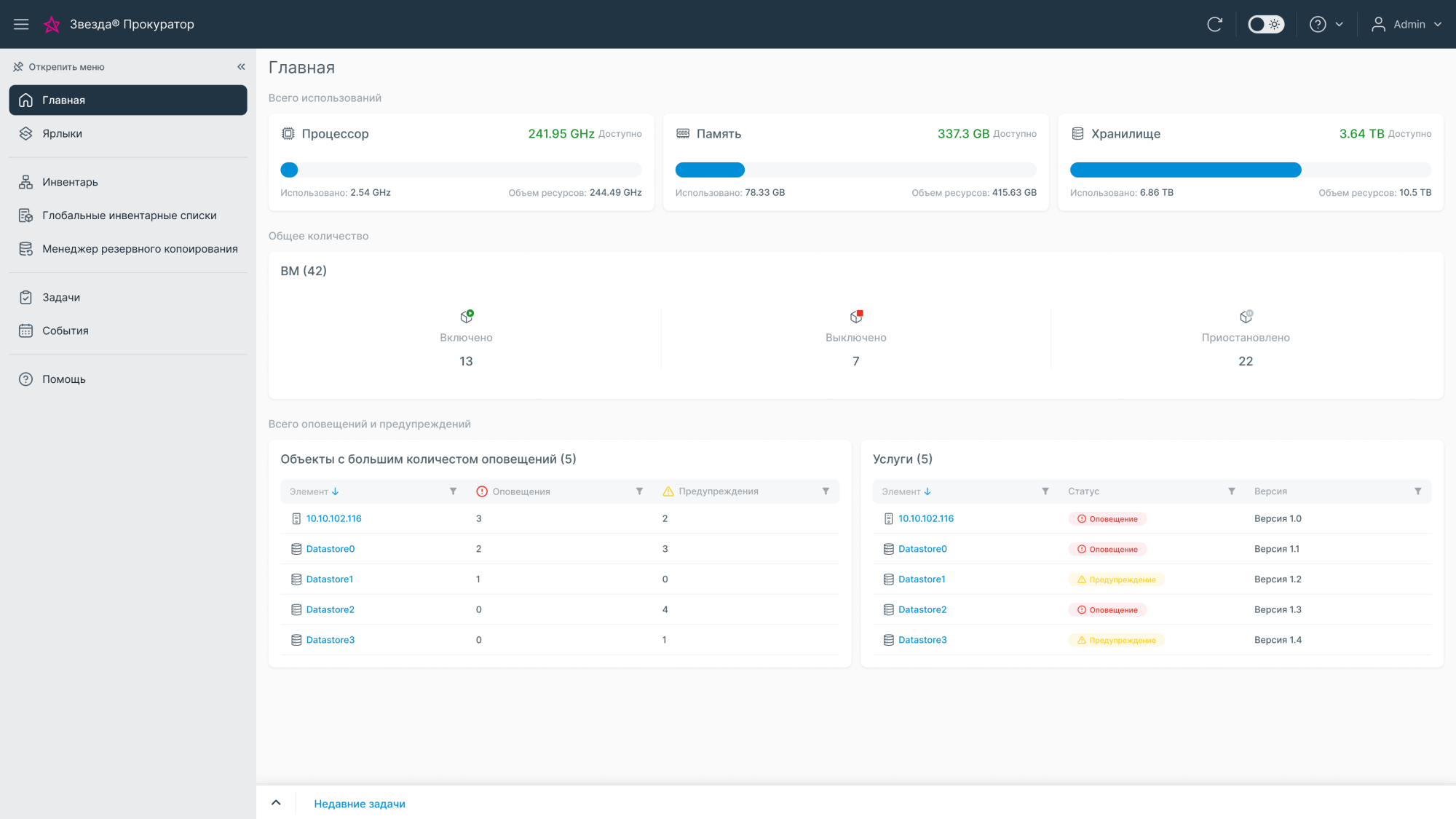 - контроль ВМ, сетей, хранилищ и кластеров